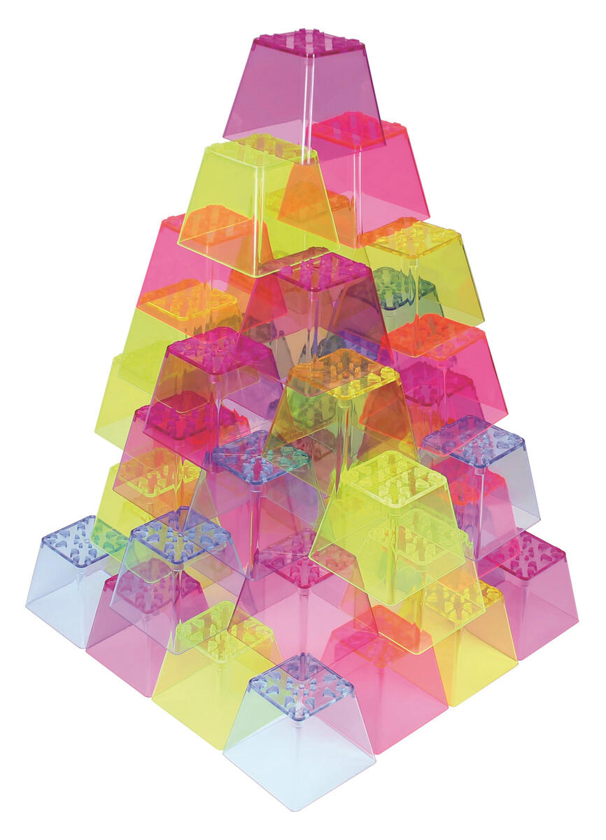 50 st/fp. Gör byggandet till ett sensoriskt äventyr! Klossarna staplas lätt på varandra och skapar olika färger när de överlappar varandra. Används med fördel på ett ljusbord. Mått: 5x6 cm. Material: PS. PVC-fri.
