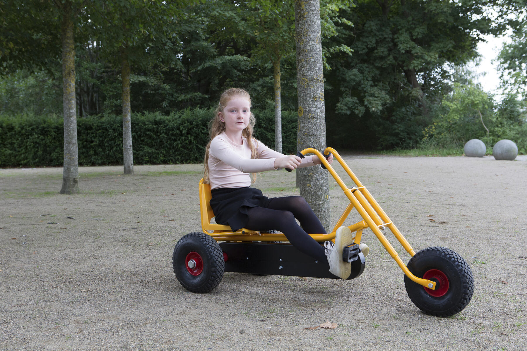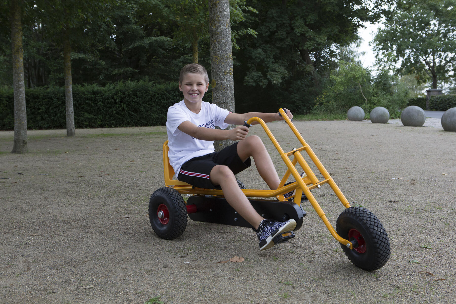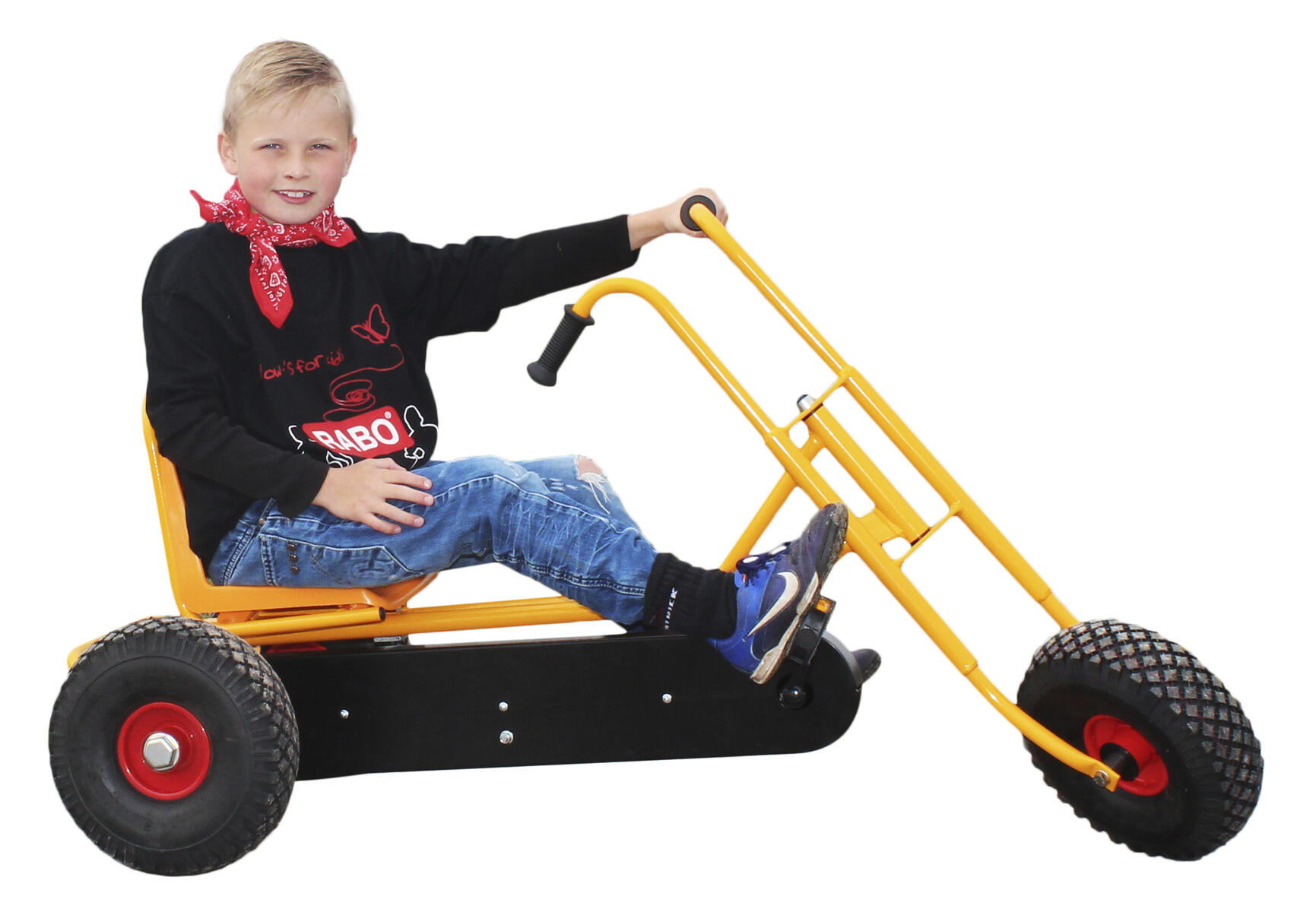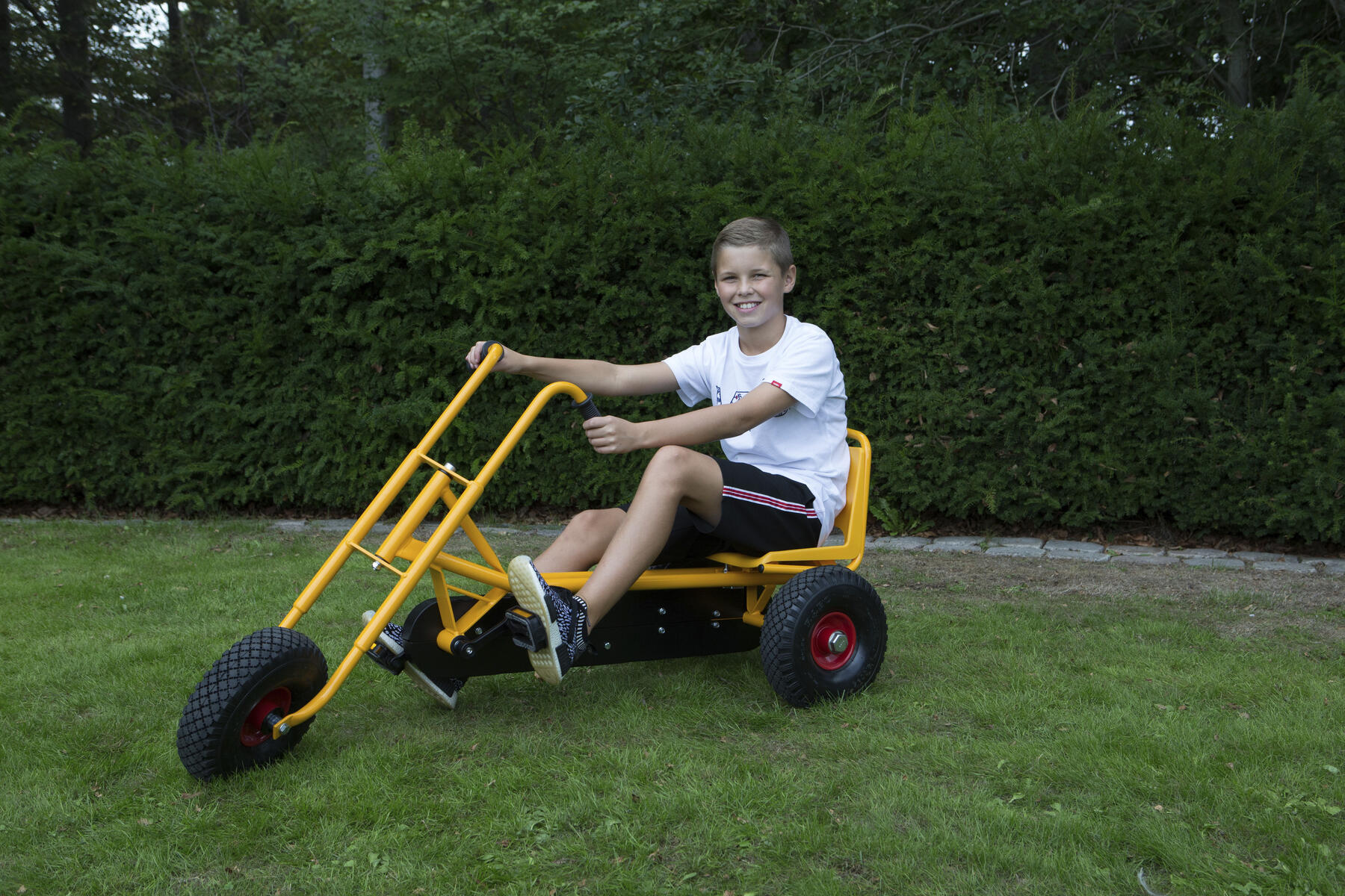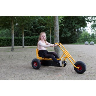 Originalet i toppkvalitet. En robust och slitstark trampbil som är konstruerad att klara hård och intensiv användning. Terränggående luftgummihjul. Kullager i hjulen gör den lättrampad. Flyttbart säte som gör den användbar till barn i åldrar från 4-12 år.