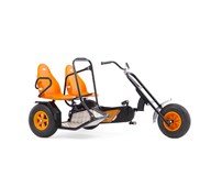Trampbil med 4 hjul och två säten. Passagerarsätet kan tas bort så att passageraren kan stå på plattformen. BERG Duo Chopper har en robust ram och är lättmanövrerad tack vare liten vändradie. Luftgummidäcken gör den bekväm att köra. Utrustad med frihjulsbroms, handbroms och parkeringsbroms. Ratten och sätet kan justeras i 6 olika lägen. Maxvikt 100 kg per säte. Av stål, gummi och PP.PVC-fri. Ålder 5–12 år.