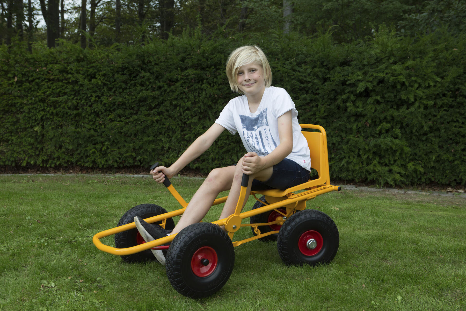 Originalet i toppkvalitet. En robust och slitstark trampbil som är konstruerad att klara hård och intensiv användning. Terränggående luftgummihjul. Kullager i hjulen gör den lättrampad. Flyttbart säte som gör den användbar till barn i åldrar från 4-12 år.