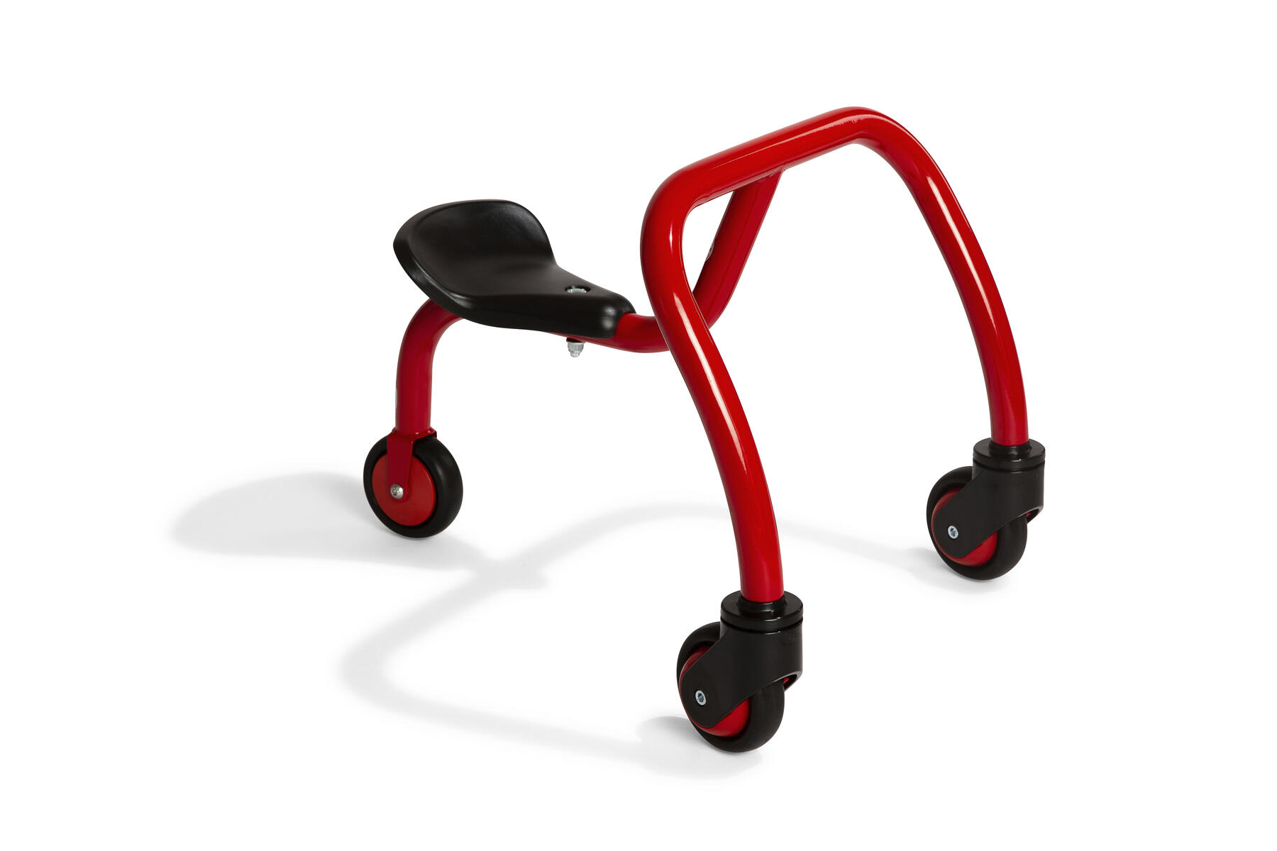 Detta roliga fordon utan pedaler utmanar barnens koordination och samarbetsförmåga, eftersom hjulen kan svänga 360 grader. Med bekväma säten och en unik design, som gör fordonet stabilt och säkert, blir detta fordon perfekt för barn som aldrig provat att cykla förut. Levereras monterad. Mått: L54xB64XH42 cm. Sitthöjd 14 cm. Vikt: 7 kg. PVC-fri. Från 2-4 år.