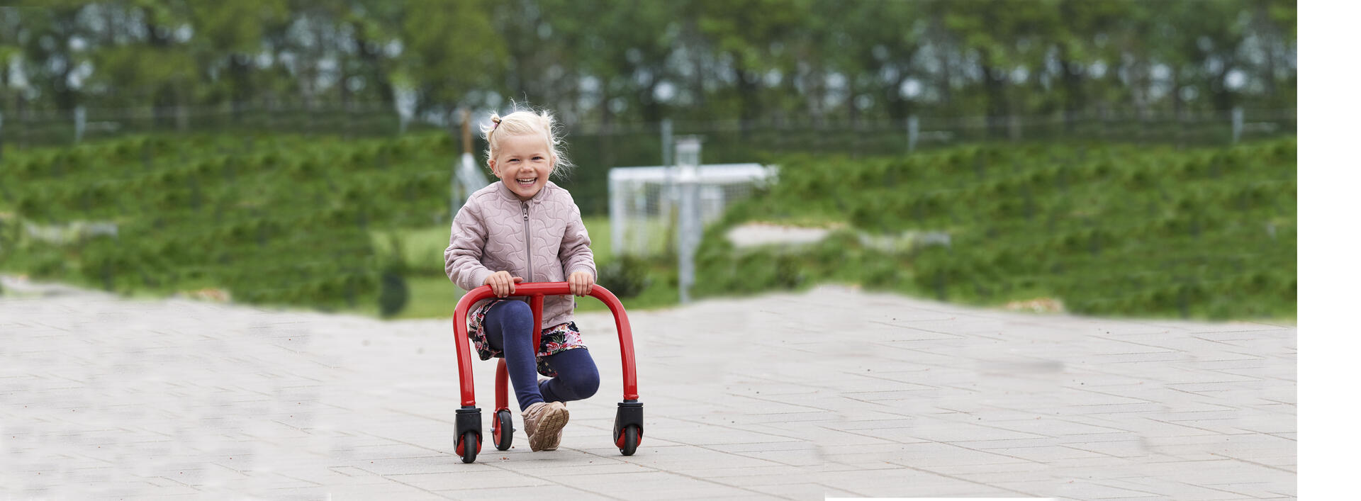 Winther Viking Wheely Rider är ett spännande fordon som på ett okonventionellt sätt ger barn möjlighet att utveckla sin koordinationsförmåga. Det krävs bra samordningsteknik för att Wheely ska rotera och förflytta sig. Stärker också barnets arm- och bröstmuskulatur och ökar förståelsen för barn med funktionsnedsättning. Av stål, PP och TPE. PVC-fri. Ålder 4-10 år.