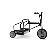 Ett set med alla tre räddningscyklarna för sociala lekar och aktiviteter. Ingår ambulans, brandkår och polis. Här finns plats för en som kör och en som åker. Brett styre med hakkudde fodrad med tjockt skumgummi. Kullager i både fram- och bakhjulen gör cykeln lättrampad. Slitstark aluminiumplatta att stå på för passageraren bak. Mått: L102xB59xH71 cm. Sitthöjd: 43 cm. Levereras färdigmonterad. PVC-fri. Ålder 4-8 år.