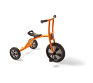 En tuff trehjuling med ett stort framhjul för de lite äldre barnen. Kullager i både fram- och bakhjulen gör cykeln lättrampad. Mått: L92xB58xH71 cm. Sitthöjd: 41 cm. Vikt: 12 kg. Av stål, PP och TPE. PVC-fri. Ålder 4-8 år.