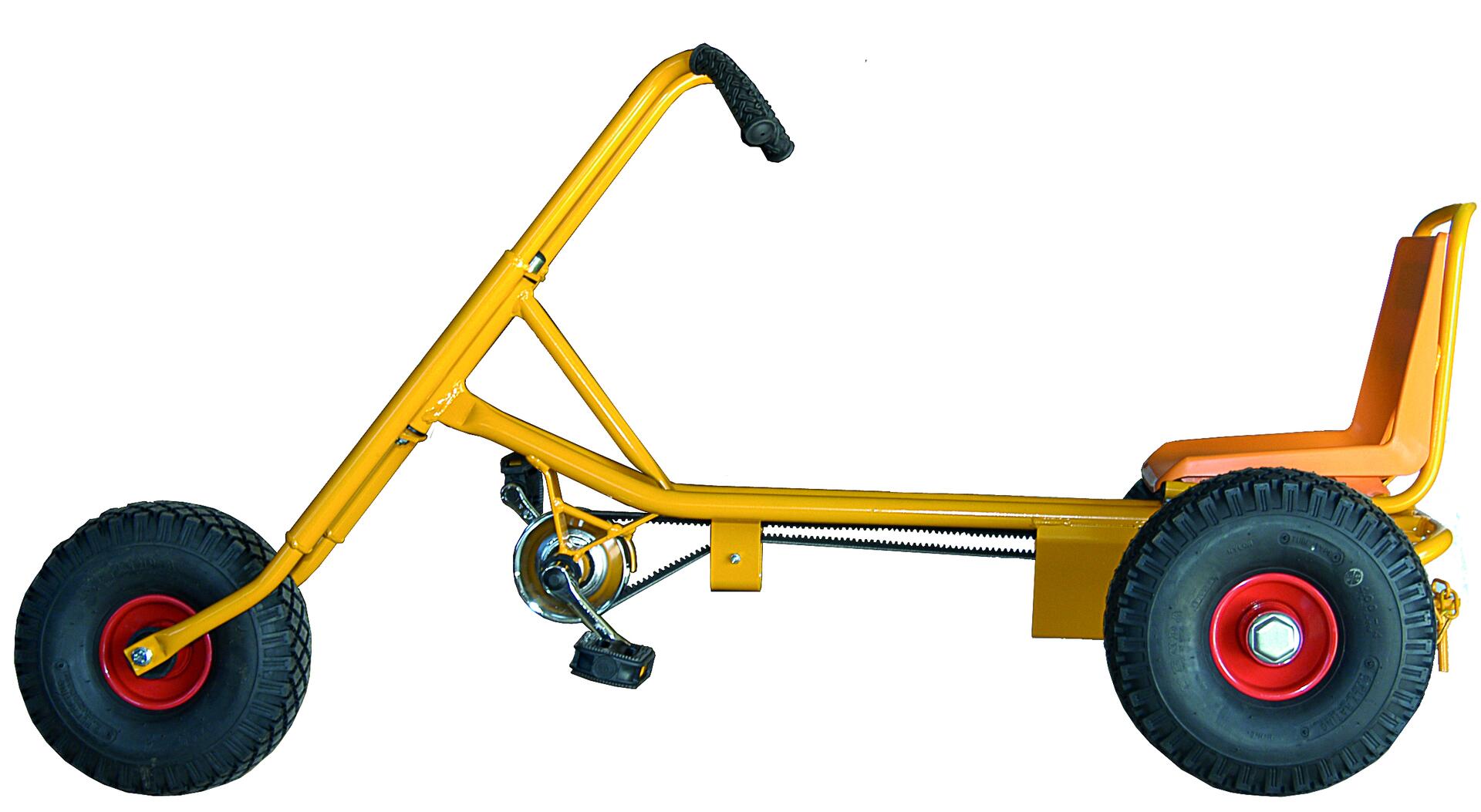Originalet i toppkvalitet. En robust och slitstark trampbil som är konstruerad att klara hård och intensiv användning. Terränggående luftgummihjul. Kullager i hjulen gör den lättrampad. Flyttbart säte som gör den användbar till barn i åldrar från 4-12 år.