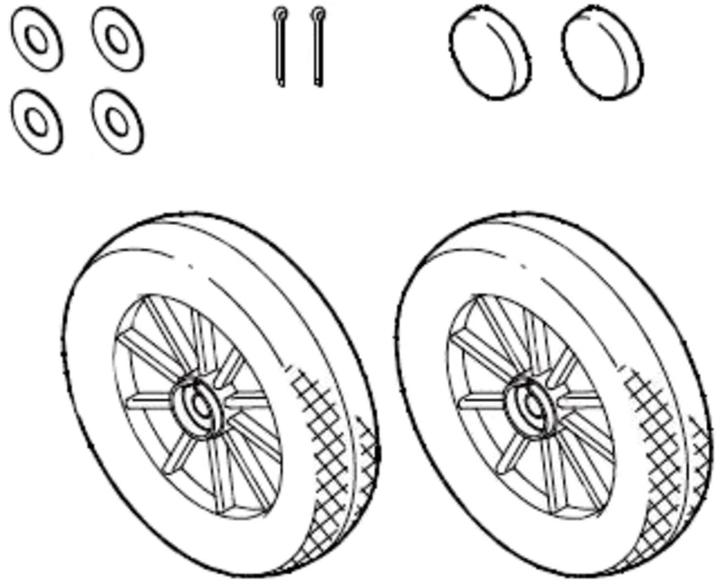 Reservdelar i form av bakhjul, plastbeslag och skruvar som passar till Winther Vikings 14040 Höghjuling, 14054 Spark liten 14056 Spark stor och 75359 Sparkcykel.
