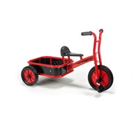 En kul modell där barnen kan transportera t.ex. sand eller leksaker. Stimulerar fantasifull, social lek som t.ex. truckförare eller byggnadsarbetare. Industrikullager både fram och bak gör cykeln lättrampad. Maxvikt: 75 kg, varav släpet 24 kg. Av stål, PP och TPE. PVC-fri. Ålder 4–8 år.