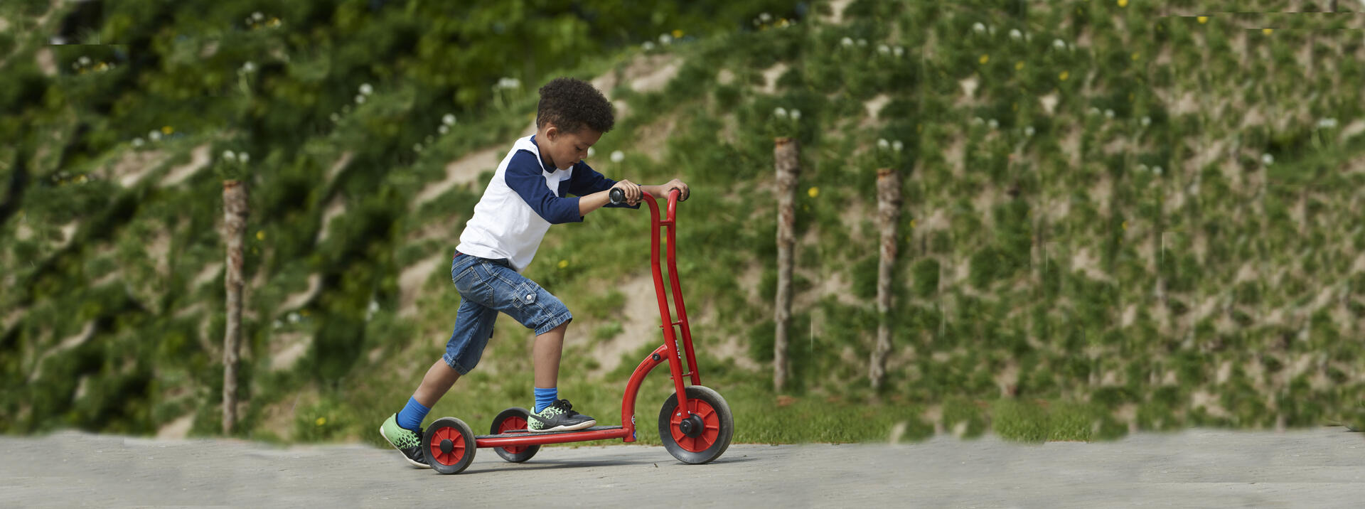 En solid sparkcykel som är speciellt framtagen för förskolor och fritidshem. Utvecklar barnens koordination och balans. Med broms på bakhjulet. Fotplattan av slitstark aluminium är lätt att rengöra. Kullagerhjul. Mått: L90xH83 cm. Levereras färdigmonterad. PVC-fri. Från 4 år och uppåt.