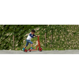 En solid sparkcykel som är speciellt framtagen för fritidshem och skolor. Utvecklar barnens koordination och balans. Med broms på bakhjulet. Fotplatta av slitstarkt aluminium, som är lätt att rengöra. Kullagerhjul. Levereras färdigmonterad. PVC-fri. Ålder 8-12 år.