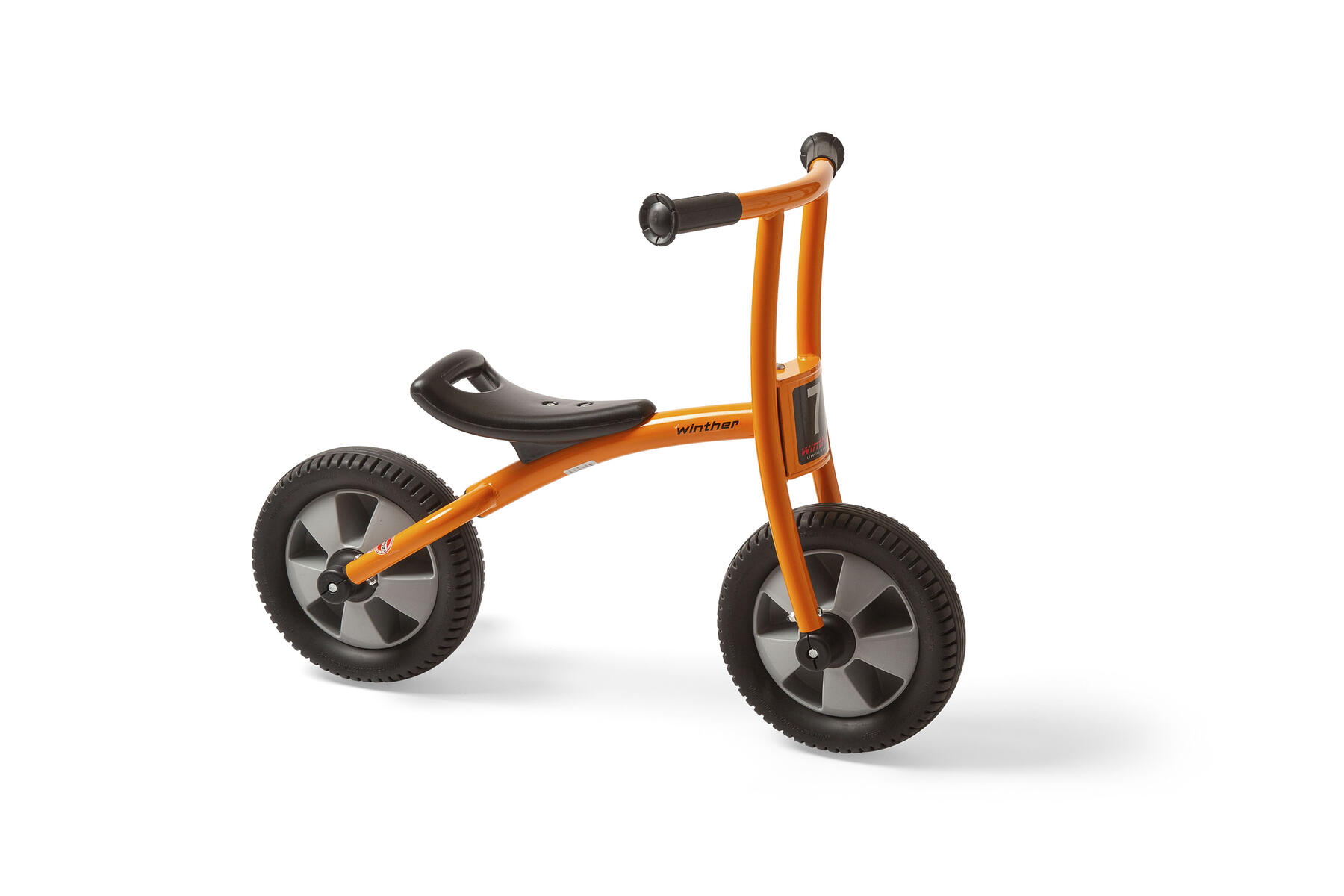 På denna cykel tränar barnen balansen. En bra start innan de ska lära sig att cykla på en riktig cykel. Kullager i både fram- och bakhjulet gör cykeln lättrullad. Max belastning 75 kg. Längd: 70 cm. Bredd: 44 cm. Höjd: 52 cm. Vikt: 7,3 kg. Sitthöjd: 35 cm. Enkel montering, anvisning medföljer. Av stål, PP och TPE. PVC-fri. Ålder 3-5 år.