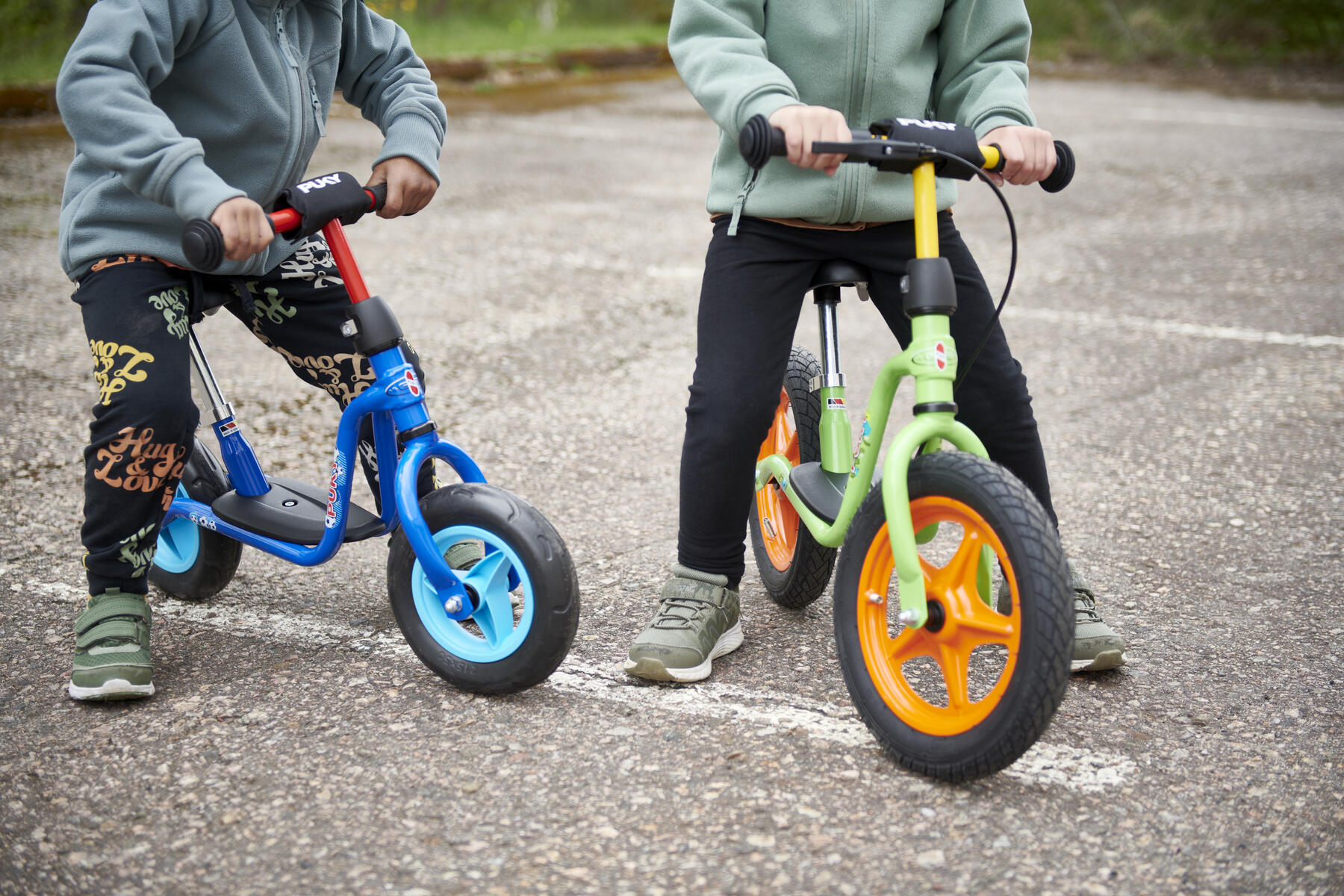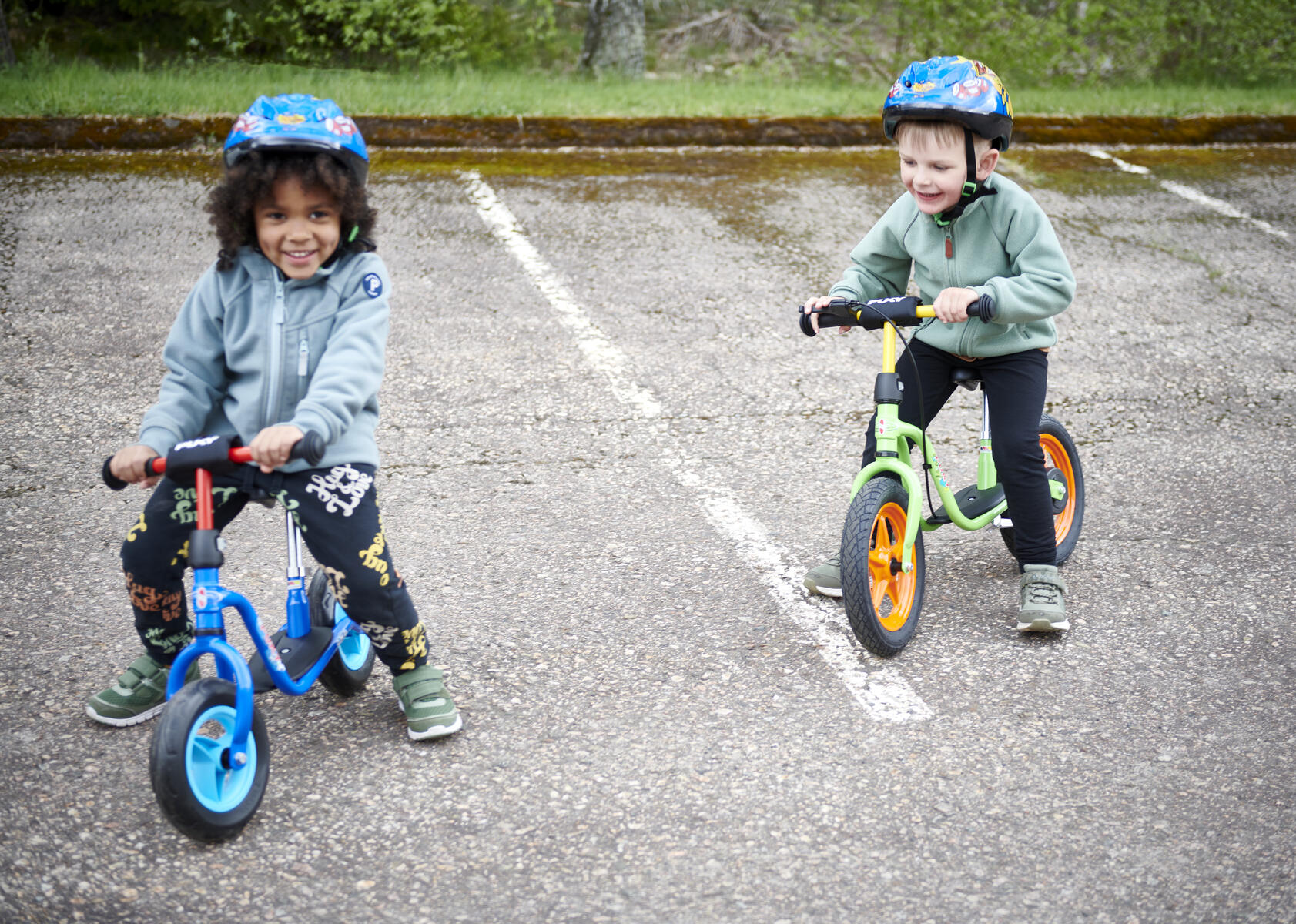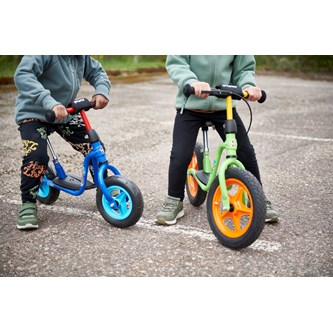 På denna cykel tränar barnen balansen. En bra start innan de ska lära sig att cykla på en riktig cykel. Kullager i både fram- och bakhjulet gör cykeln lättrullad. Max belastning 75 kg. Längd: 70 cm. Bredd: 44 cm. Höjd: 52 cm. Vikt: 7,3 kg. Sitthöjd: 35 cm. Enkel montering, anvisning medföljer. Av stål, PP och TPE. PVC-fri. Ålder 3-5 år.