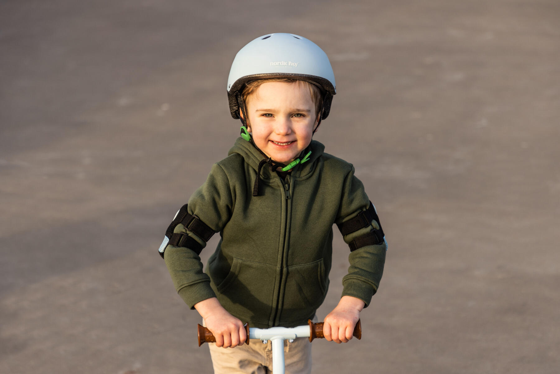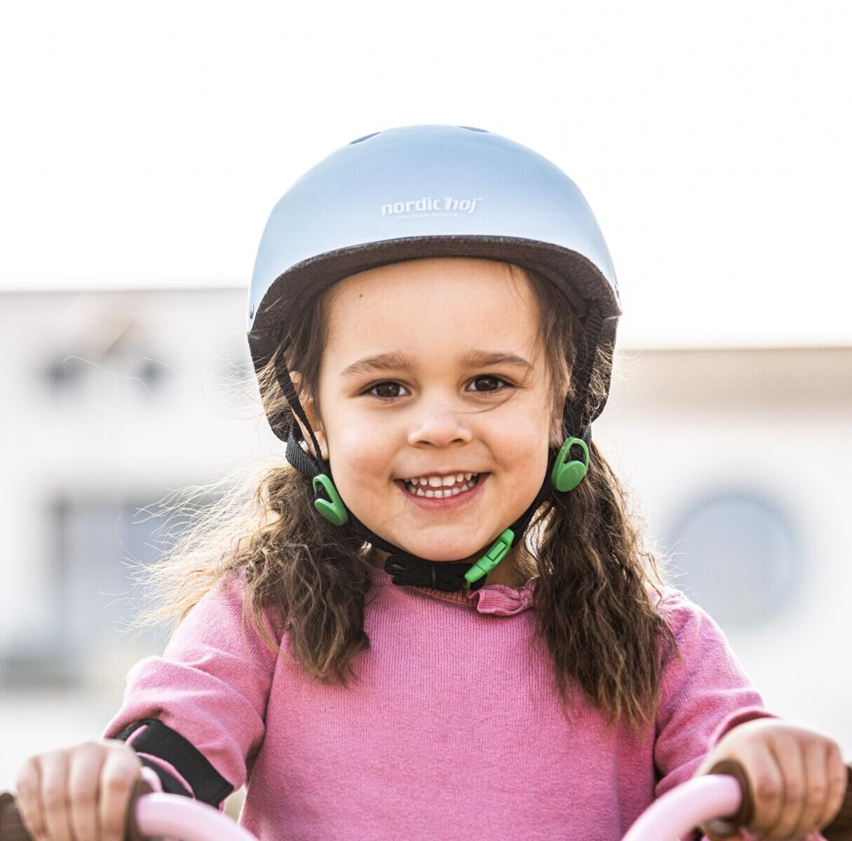 En lätt cykelhjälm som ger utmärkt skydd och komfort vid cykling och andra aktiviteter. Med grönt spänne som löser ut vid viss belastning. Justerbar ring inuti ger optimal passform på huvudet. Godkänd enligt EN 1080:2013 och (EU) 2016/425. Innermått: 49-55 cm. Vikt: 180 g. Av PVC utan förbjudna ftalater. Ålder 2-7 år.