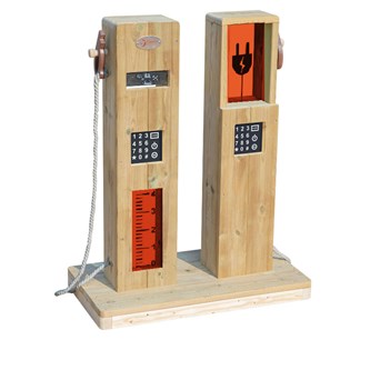 Som en del av rolleken stannar barnen för att låtsas tanka eller ladda upp sitt fordon. Genom att imitera olika funktioner i vardagslivet utvecklas barnens förståelse för sin omvärld. Perfekt att använda ute på gården. Höjd: 88 cm. Tillverkad i träskyddsbehandlad furu. PVC-fri. Mått: 70x38x88 cm. Från 3 år. Ämnad för utomhusbruk.