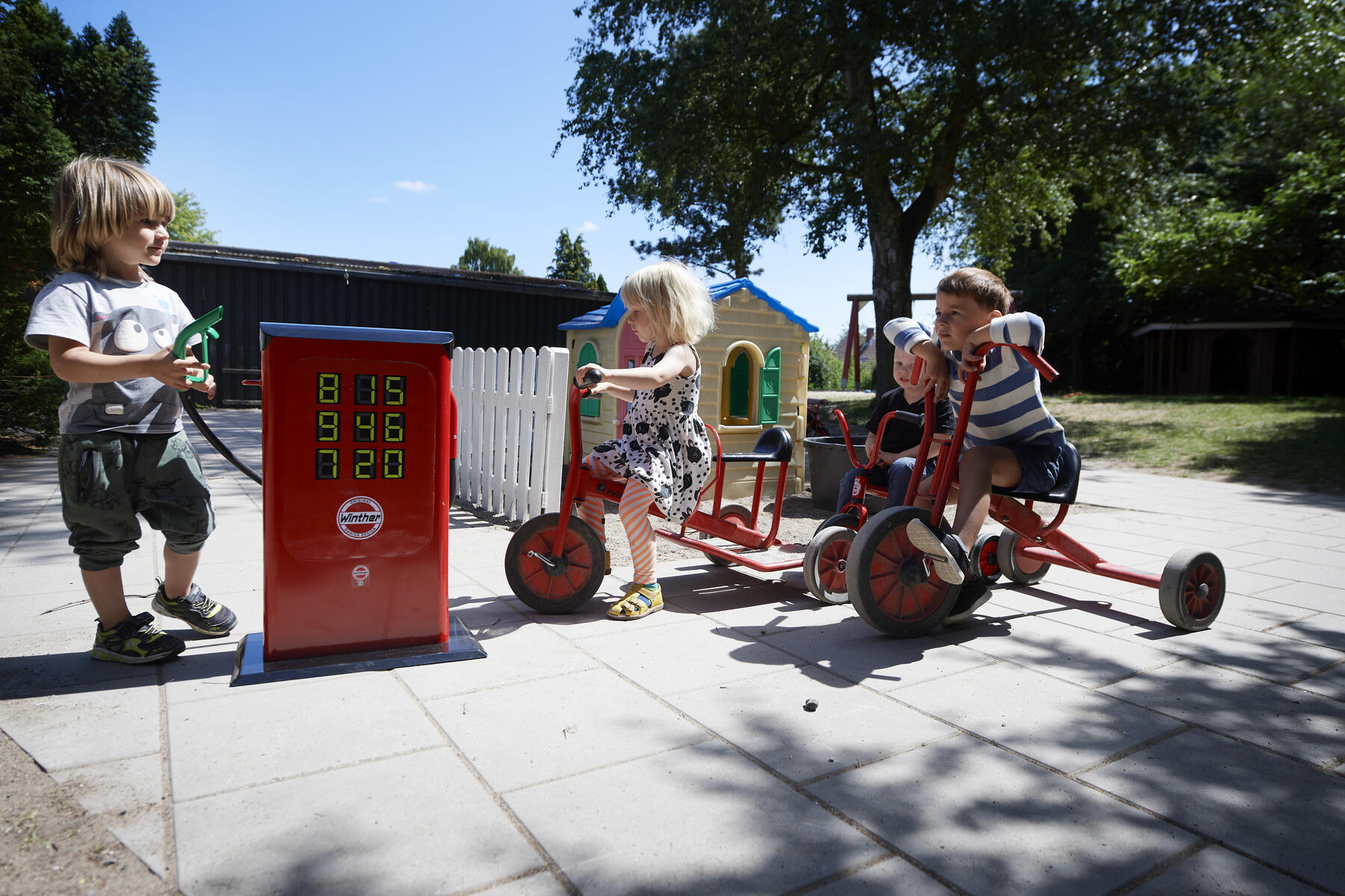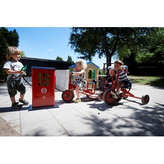 Som en del av rolleken stannar barnen för att låtsas tanka, fylla på vatten eller olja på sitt fordon. Genom att imitera olika funktioner i vardagslivet utvecklas barnens förståelse för sin omvärld. Av pulverlackerad metall med gummidetaljer. PVC-fri. Från 3 år.