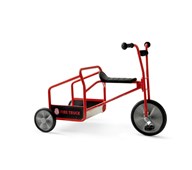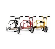 Här hittar du allt som rullar på tre hjul såsom trehjulingar, scootrar och cargobikes för förskolan, skolan och fritidsverksamheten. Våra förskolecyklar är säkra och hållbara uteleksaker som främjar leklusten, fantasin, motoriken och balansen. Här finns både Svanenmärkta taxicyklar, röda tricarts, svarta poliscyklar och gröna renhållningscyklar. Allt för att kicka igång den fartfyllda rolleken. Oavsett om barnet är lite mindre eller större har vi storlekar för de alla, allt från den lilla trehjulingen till ettåringen till den stora varianten till femåringen. Och med vår cargobike kan utflykter ske på ett roligt och enkelt sätt utanför förskolan.