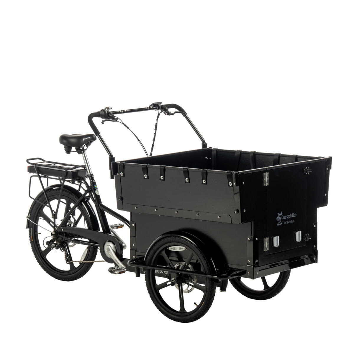 Cargobike Delight är en praktisk elcykel för att transportera upp till 6 barn eller rejält med utrustning. Två parallella sittbänkar med sex individuella säkerhetsbälten och öppningsbar front av plexiglas. Lådan är byggd över hjulen för största möjliga lastutrymme. Mittmonterad motor på 110 Nm. 8 utanpåliggande Shimano växlar. Batteriet (576 Wh) sitter i det låsbara förvaringsutrymmet och ger en räckvidd på upp till 50 km. Elcykeln har hydrauliska skivbromsar både fram och bak samt automatisk belysning. För mer info se teknisk specifikation under dokument och filer. Där finner ni även dokumentet "Säker cykling i trafiken" som vi rekommenderar att ni läser igenom innan er första tur.