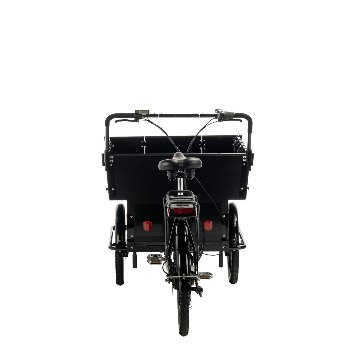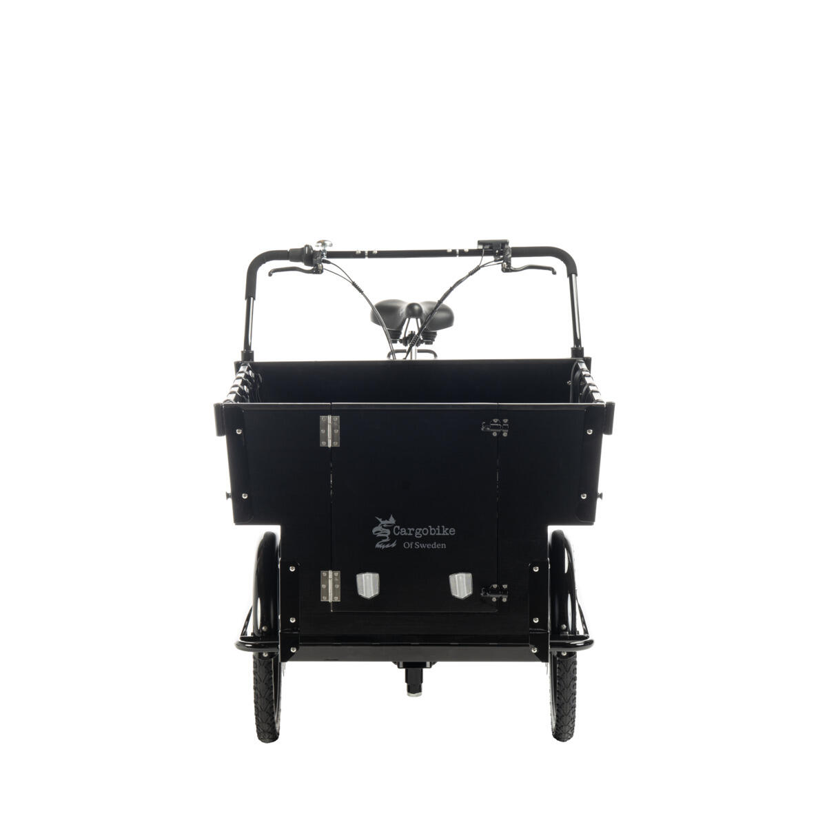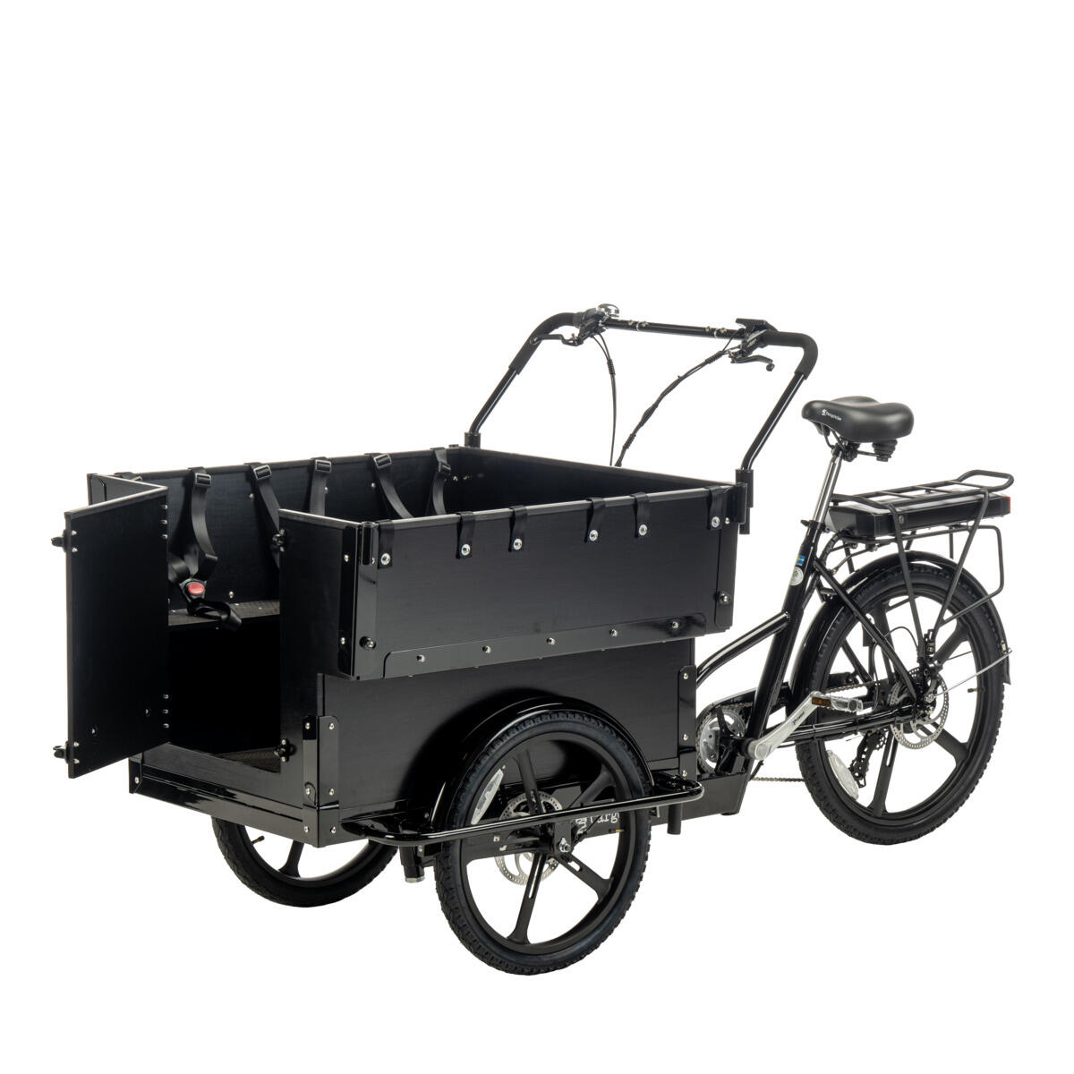 Det här är en praktisk elcykel för att transportera många barn eller rejält med utrustning. Lådan är byggd över hjulen och erbjuder därmed största möjliga lastutrymme. Upp till sex barn sitter säkert med hjälp av trepunktsbälten på två parallella bänkar och lådans front är öppningsbar så att barnen själv kan ta plats i lådan. Bakmonterad motor på 45 Nm. Batteriet på 13 Ah i pakethållaren bak laddas enkelt i ett vanligt eluttag. Beräknad räckvidd är cirka 20-40 kilometer. Elcykeln har hydrauliska skivbromsar såväl fram som bak och 6 utanpåliggande växlar. Belysning fram och bak samt säkerhetsbälte för 6 barn är inkluderat. För mer info se teknisk specifikation under dokument och filer. Där finner ni även dokumentet 'Säker cykling i trafiken' som vi rekommenderar att ni läser igenom innan ni ger er ut på er första tur.