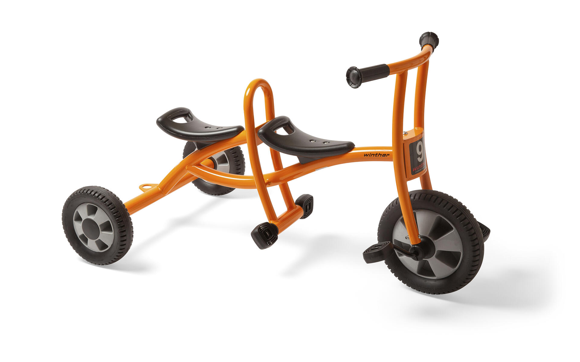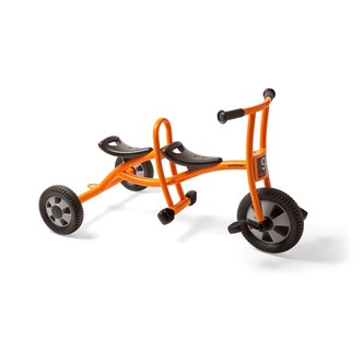 En paket med roliga cyklar med plats för extra passagerare. Utvecklar barnens sociala samspel och samarbetsförmåga. Fotplatta av slitstarkt aluminium, som är lätt att rengöra. Kullagerhjul både fram och bak. Levereras färdigmonterad. Längd: 112 cm. Bredd: 78 cm. Höjd: 71 cm. Sitthöjd: 43 cm. PVC-fri. Från 4 år.