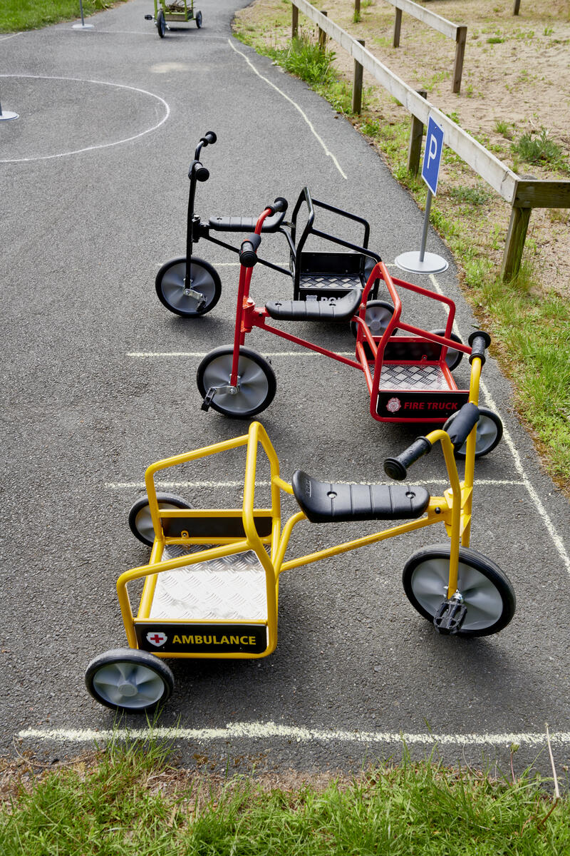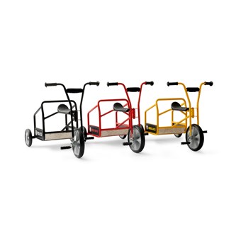 En paket med roliga cyklar med plats för extra passagerare. Utvecklar barnens sociala samspel och samarbetsförmåga. Fotplatta av slitstarkt aluminium, som är lätt att rengöra. Kullagerhjul både fram och bak. Levereras färdigmonterad. Längd: 112 cm. Bredd: 78 cm. Höjd: 71 cm. Sitthöjd: 43 cm. PVC-fri. Från 4 år.