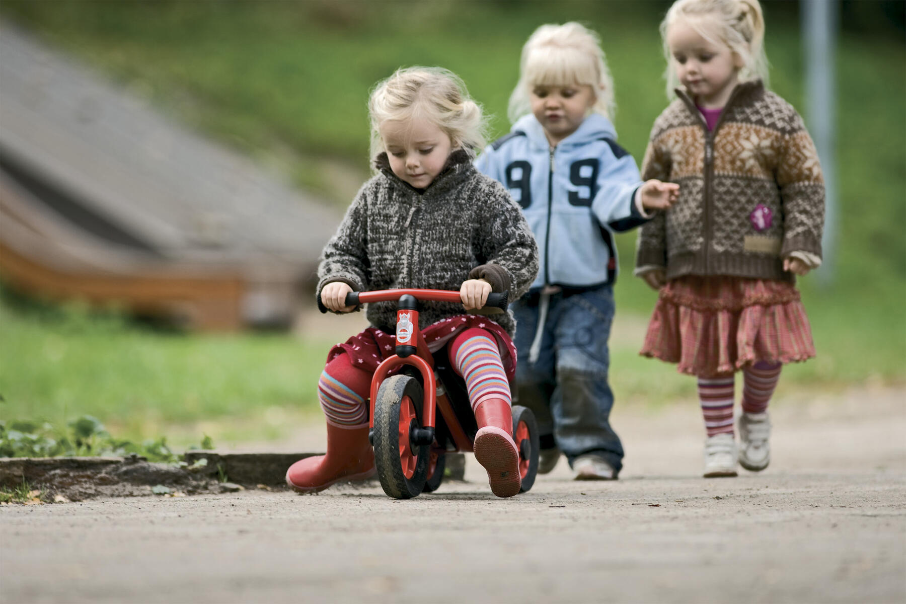 En paket med roliga cyklar med plats för extra passagerare. Utvecklar barnens sociala samspel och samarbetsförmåga. Fotplatta av slitstarkt aluminium, som är lätt att rengöra. Kullagerhjul både fram och bak. Levereras färdigmonterad. Längd: 112 cm. Bredd: 78 cm. Höjd: 71 cm. Sitthöjd: 43 cm. PVC-fri. Från 4 år.