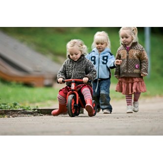 Cykel för de lite större barnen. Med kullager i både fram- och bakhjulen gör cykeln lättrampad. Enkel montering, anvisning medföljer. Av stål, PP och TPE. PVC-fri. Ålder 3–6 år.