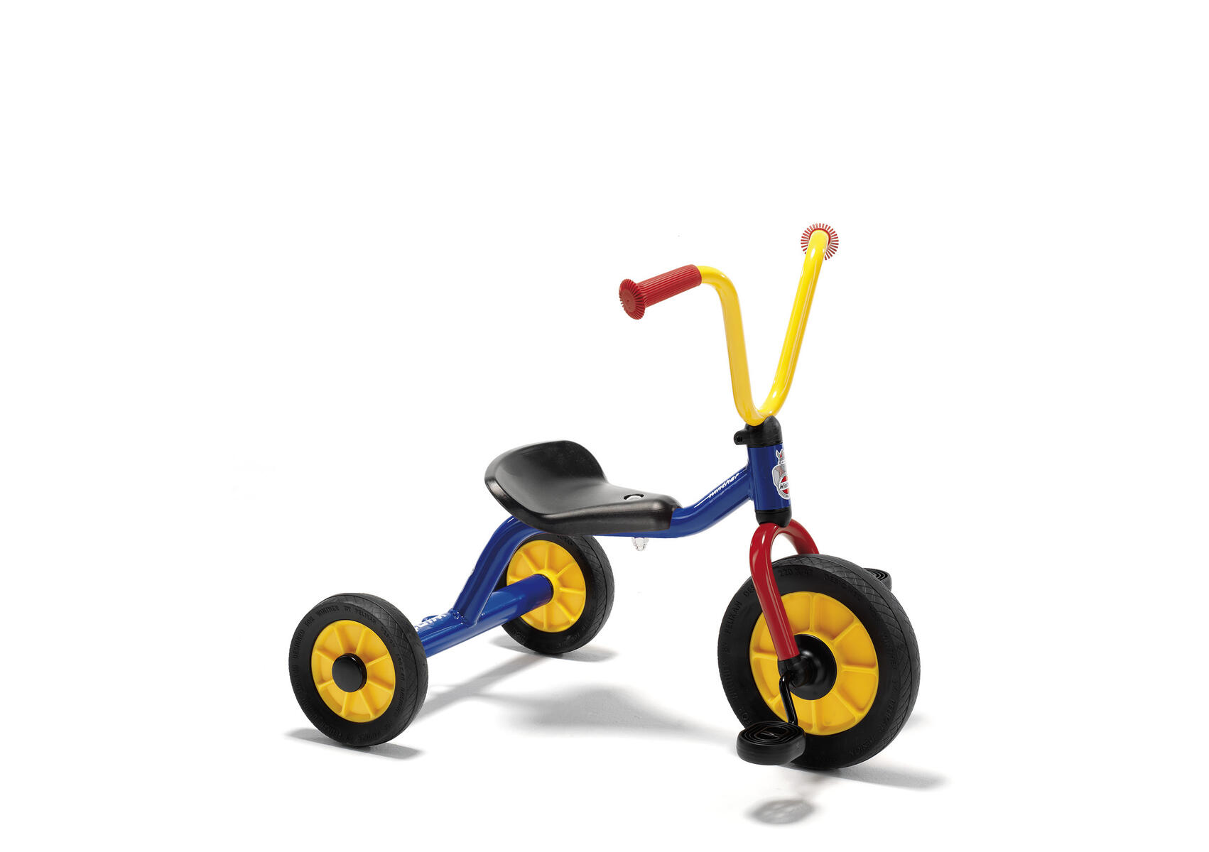Liten trehjuling utan flak. Mått: sitthöjd 24 cm, totallängd 65 cm, höjd styre 52 cm. Vikt: 5,3 kg. Enkel montering, anvisning medföljer. Av stål, PP och TPE. PVC-fri. Ålder ca 1–4 år.
