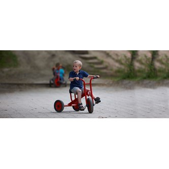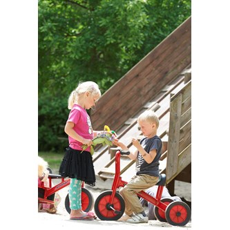 En paket med roliga cyklar med plats för extra passagerare. Utvecklar barnens sociala samspel och samarbetsförmåga. Fotplatta av slitstarkt aluminium, som är lätt att rengöra. Kullagerhjul både fram och bak. Levereras färdigmonterad. Längd: 112 cm. Bredd: 78 cm. Höjd: 71 cm. Sitthöjd: 43 cm. PVC-fri. Från 4 år.