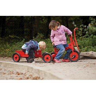 Ett robust släp som kan användas för många olika lekar. Släpet har en kapacitet på 75 kg. Botten har räfflad metallyta för säkrare lek. Passar till alla Winthers trehjulingar utom 14401. Enkel montering, anvisning medföljer. Hjul av PP, TPE. PVC-fri.