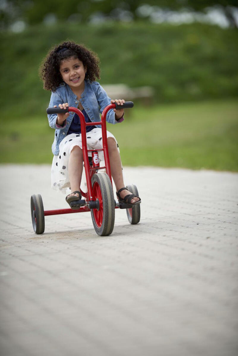 En mycket robust trehjuling för de äldre barnen. Med kullager i både fram- och bakhjulen gör cykeln lättrampad. Enkel montering, anvisning medföljer. Av stål, PP och TPE. PVC-fri. Ålder 4–8 år.