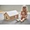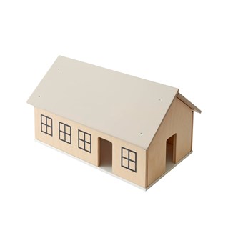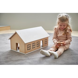 En klassisk bondgård med 2 tillhörande stall. Flyttbara längor med avtagbara tak. Av MDF. PVC-fri. Djur och traktorer ingår ej. Mått: 60x44x16 cm. Varje hus mäter 11,8 x 23,7 x 9,8 cm utan tak. Från 3 år.