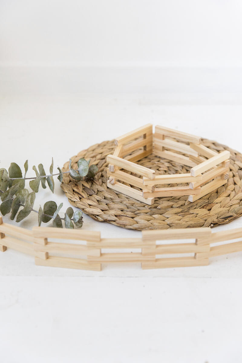 Bondgård i bra kvalitet med medföljande staket. Bondgården har avtagbart tak. Höjd 25 cm. Bredd 60 cm. Längd 60 cm. Av plywood. Staket i plast 8 delar. Längd per del: 22 cm. Av PVC, fria från ftalater. Från 3 år.