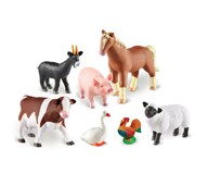 Stora bondgårdsdjur för små händer och timmar med fantasifull lek. Realistiskt detaljerade figurer som inspirerar till oberoende eller samverkande spel samtidigt som de hjälper till med ordförrådets utveckling. Aktivitetsguide på engelska med bl.a. fakta om varje djur. Djuren torkas lätt av med fuktig trasa. Mått på största djuret är ca 24x18 cm. Av PVC, fri från ftalater. Från 18 månader.