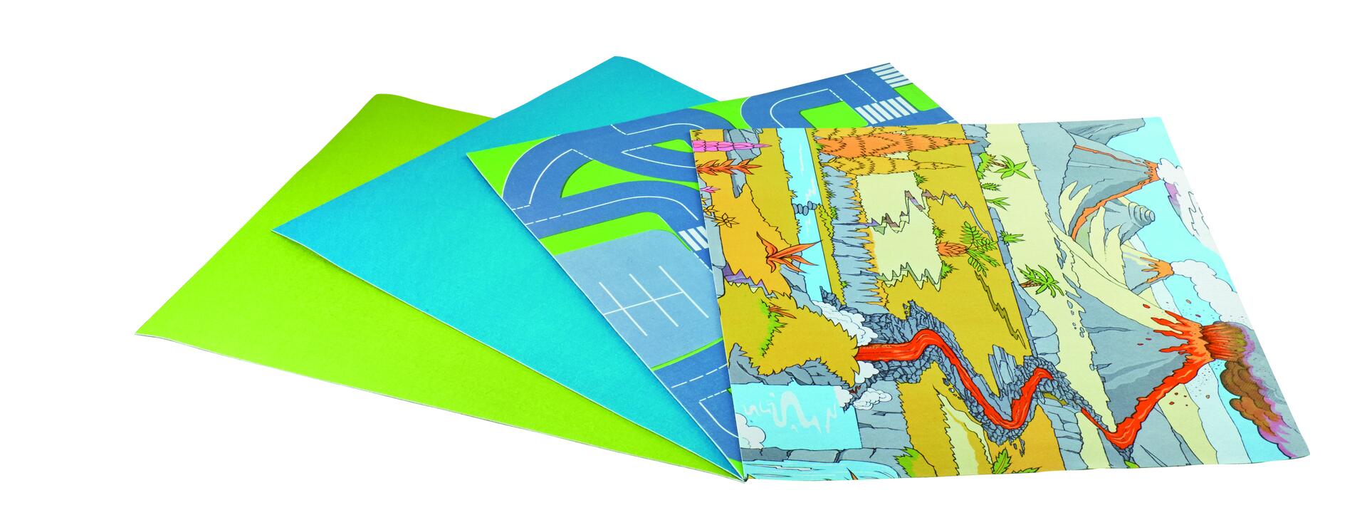 En lekmatta med motiv av ett vulkanlandskap som ger leken med t.ex. dinosaurier en extra dimension. Gummerad undersida. Anpassad för lekborden 83410 och 83411. Skyddar lekytan och är ljuddämpande. Av polyesterfilt. PVC-fri. Mått: 96,5x79,5 cm.