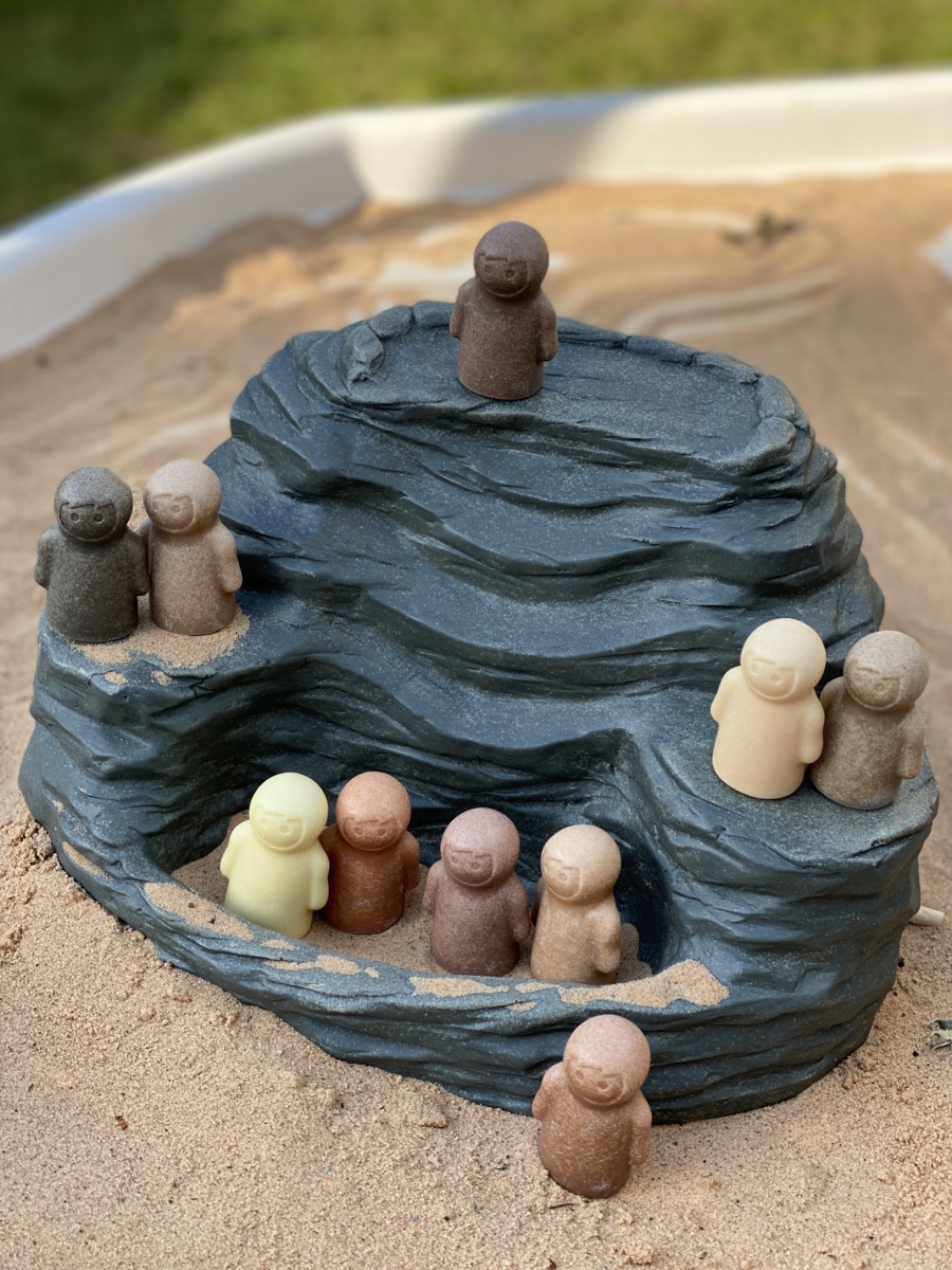 4 delar. Bygg upp en omväxlande, inkluderande lekvärld där alla årstider och miljöer representeras. Innehåller en stor stubbe, en grotta, ett isberg och ett stort vattenfall. Tillverkad av sten- och hartsmix som gör att de passar bra både inomhus och utomhus i vatten, lera och jord. PVC-fri. Från 2 år.