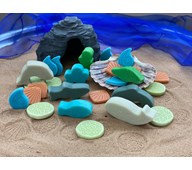 13 st/fp. Havets djur i enklare utförande. Fascinerande och detaljrika djur som lever i havet. Innehåller knölval, gråval, späckhuggare, vithaj, kaskelot, isbjörn, pingvin, valhaj, vithaj, tjurhaj, delfin, kungsörn och kejsarpingvin med unge. Längd 22–30 cm. Mått 6,5-16 cm. Av TPR, PVC, fri från ftalater. Från 3 år.