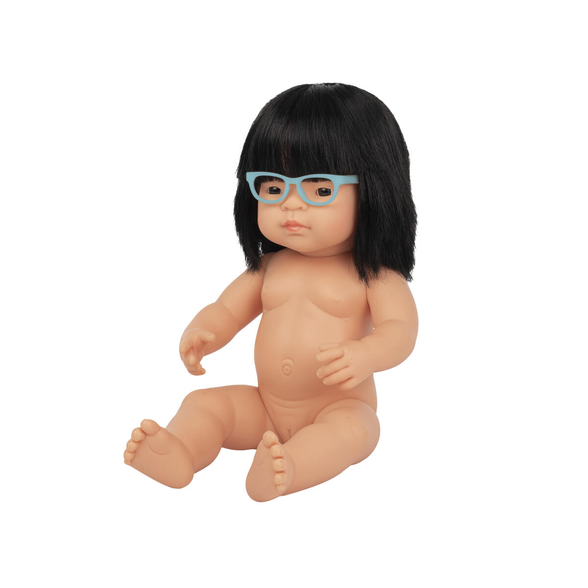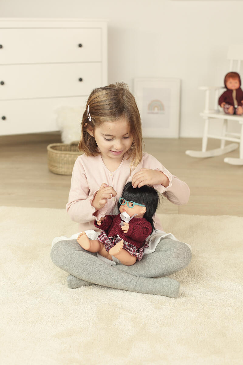 Docka med mjukstoppad kropp och blundögon. Längd 40 cm. Dockans armar, huvud och ben är tillverkade av PVC, utan förbjudna ftalater. Handtvätt. Från 2 år.