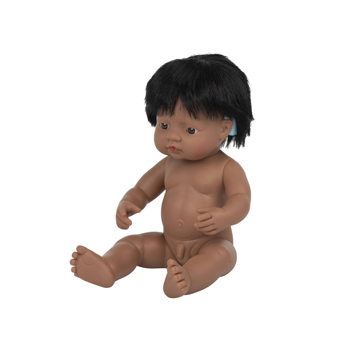 Docka med mjukstoppad kropp och blundögon. Längd 40 cm. Dockans armar, huvud och ben är tillverkade av PVC, utan förbjudna ftalater. Handtvätt. Från 2 år.
