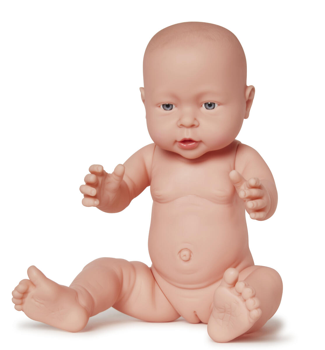En flickdocka med hård kropp och rörliga armar och ben. Verklighetstrogna hudveck. Längd 40 cm. Av PVC, fri från ftalater. Från 3 år.