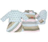 Fina dockkläder som passar dockor 38–42 cm. Innehåller 2 byxor, 2 prickiga tröjor, mössa och halsduk. Av Oeko-Texcertifierad bomull och polyester. PVC-fri. Från 3 år.