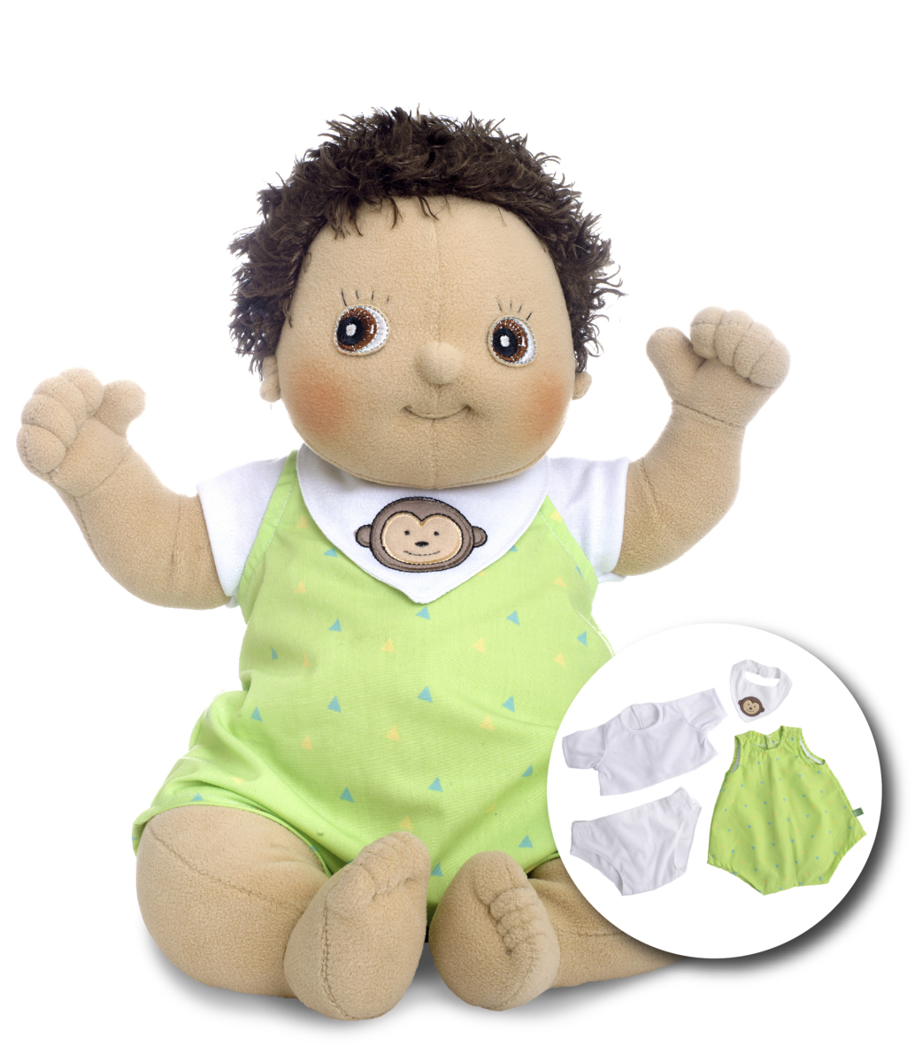 Unik och mjuk docka som ger en välkomnande och varm känsla. Docka av polyester, stoppning av återvunnen polyester. Avtagbara kläder för att kunna tvättas. PVC-fri. Från 0 år.