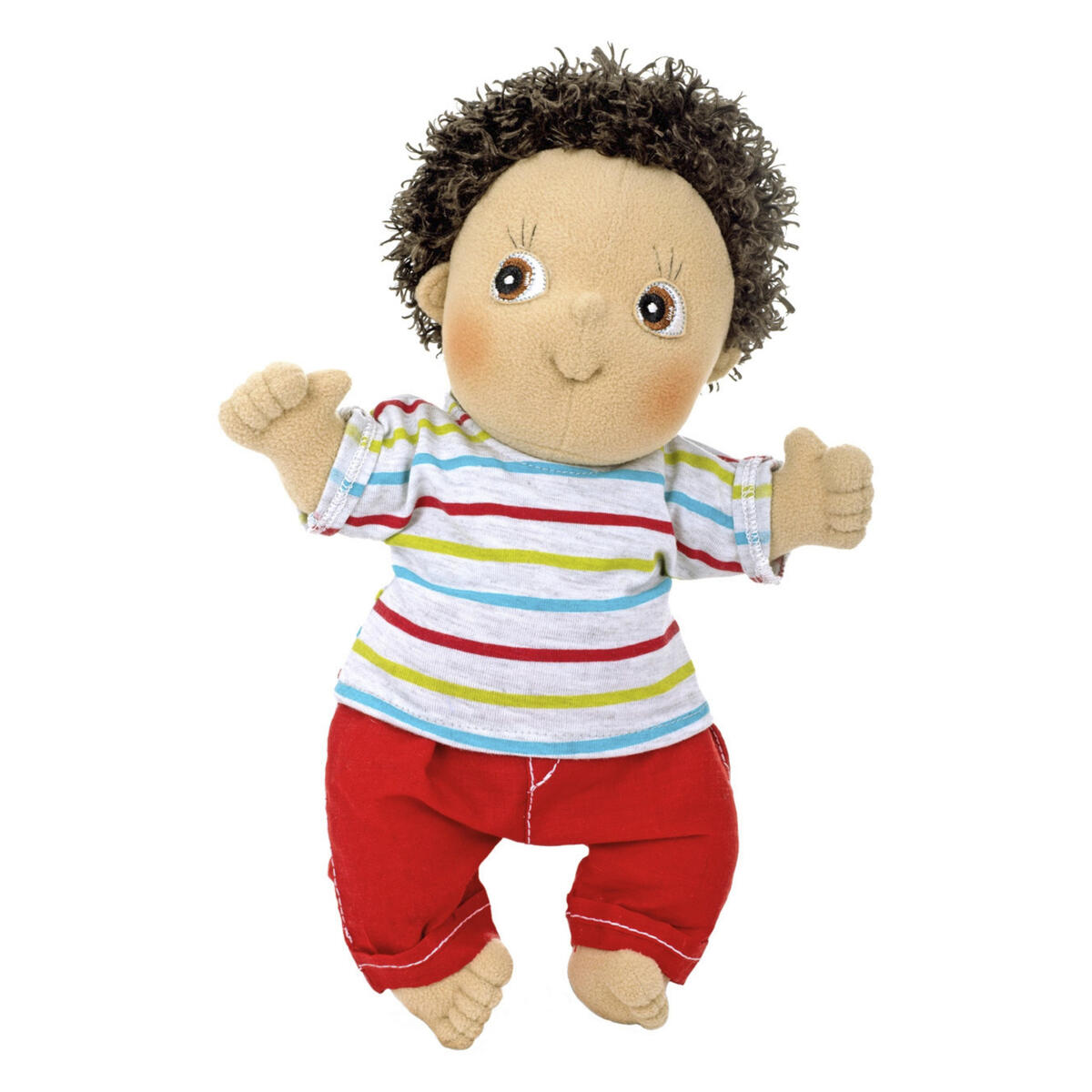 Docka med mjukstoppad kropp och blundögon. Längd 40 cm. Dockans armar, huvud och ben är tillverkade av PVC, utan förbjudna ftalater. Handtvätt. Från 2 år.