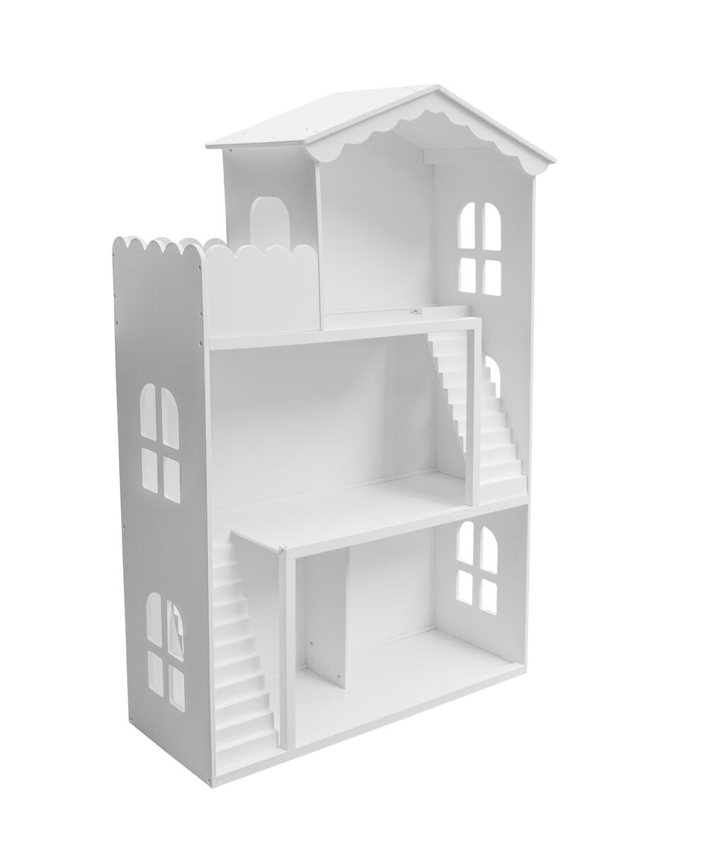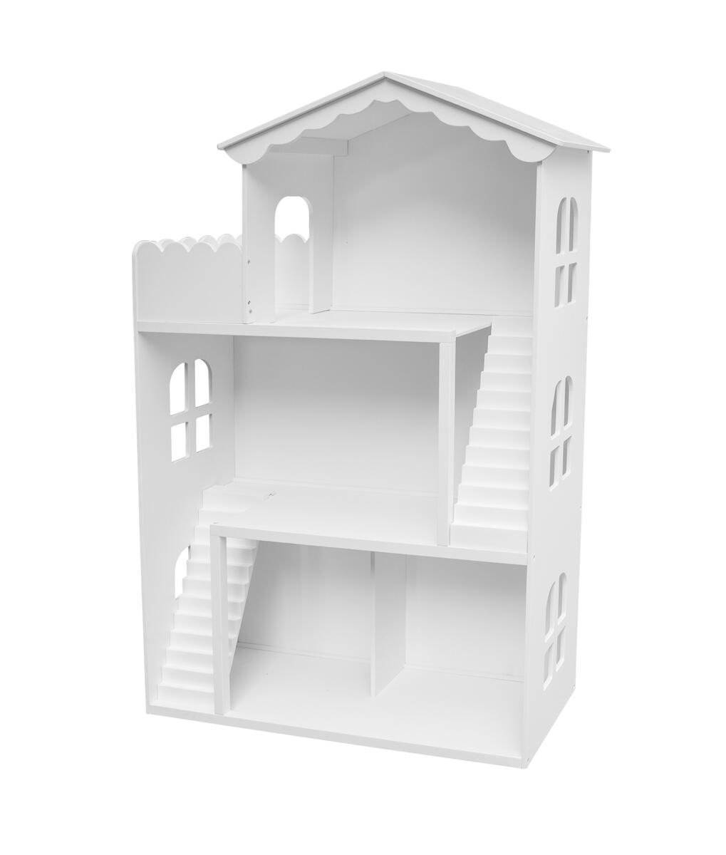 Ett stort dockhus i tre våningar, som förbinds med trappor, samt en balkong. Dockhuset uppmuntrar till timmar av fantasifull lek. Levereras omonterat. Dockmöbler ingår ej. Mått på dockhus: L30xB78xH116 cm. PVC-fri. Från 3 år.