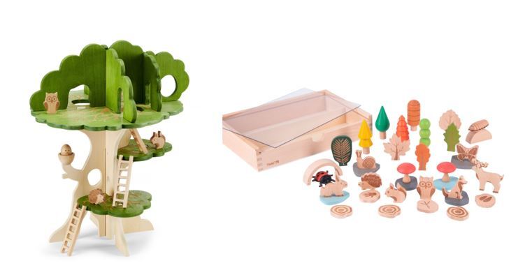 Mångsidig trädkoja i 3 nivåer av FSC-märkt trä. Kompletteras med ett skogsäventyr bland träd, löv, skogsdjur, minidjur, gråstenar och vatten. Räkna trädets ringar eller undersök djurfotspåren från hjort, räv, kanin, uggla, igelkott och ekorre. Stödjer samarbetslek, utvecklar kreativitet och fantasi samt inspirerar till diskussion om natur och miljö. Från 3 år.