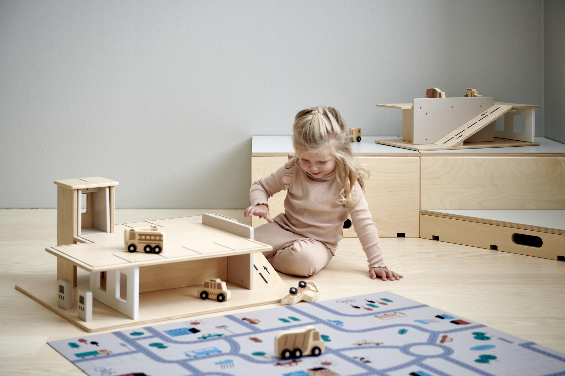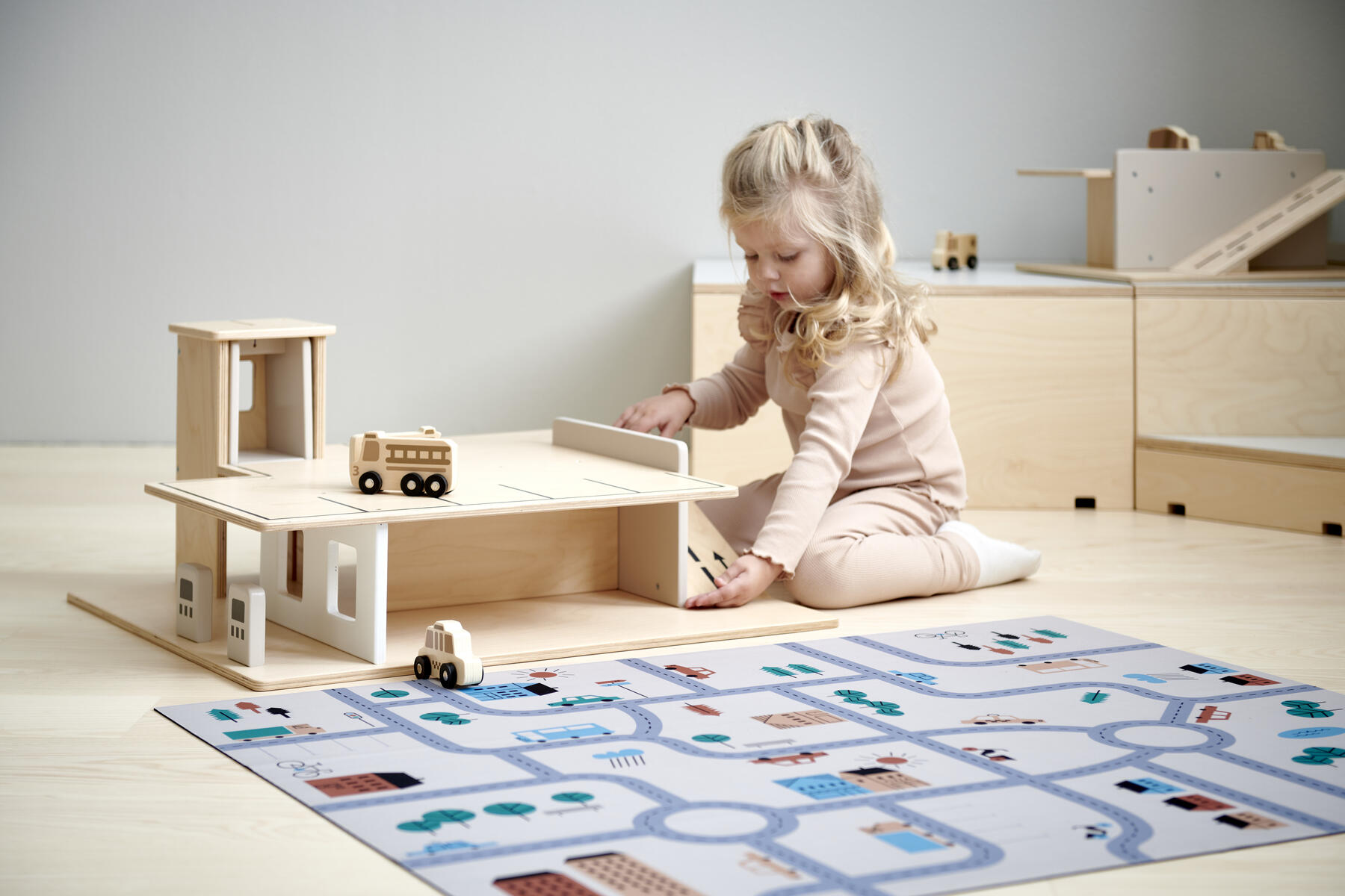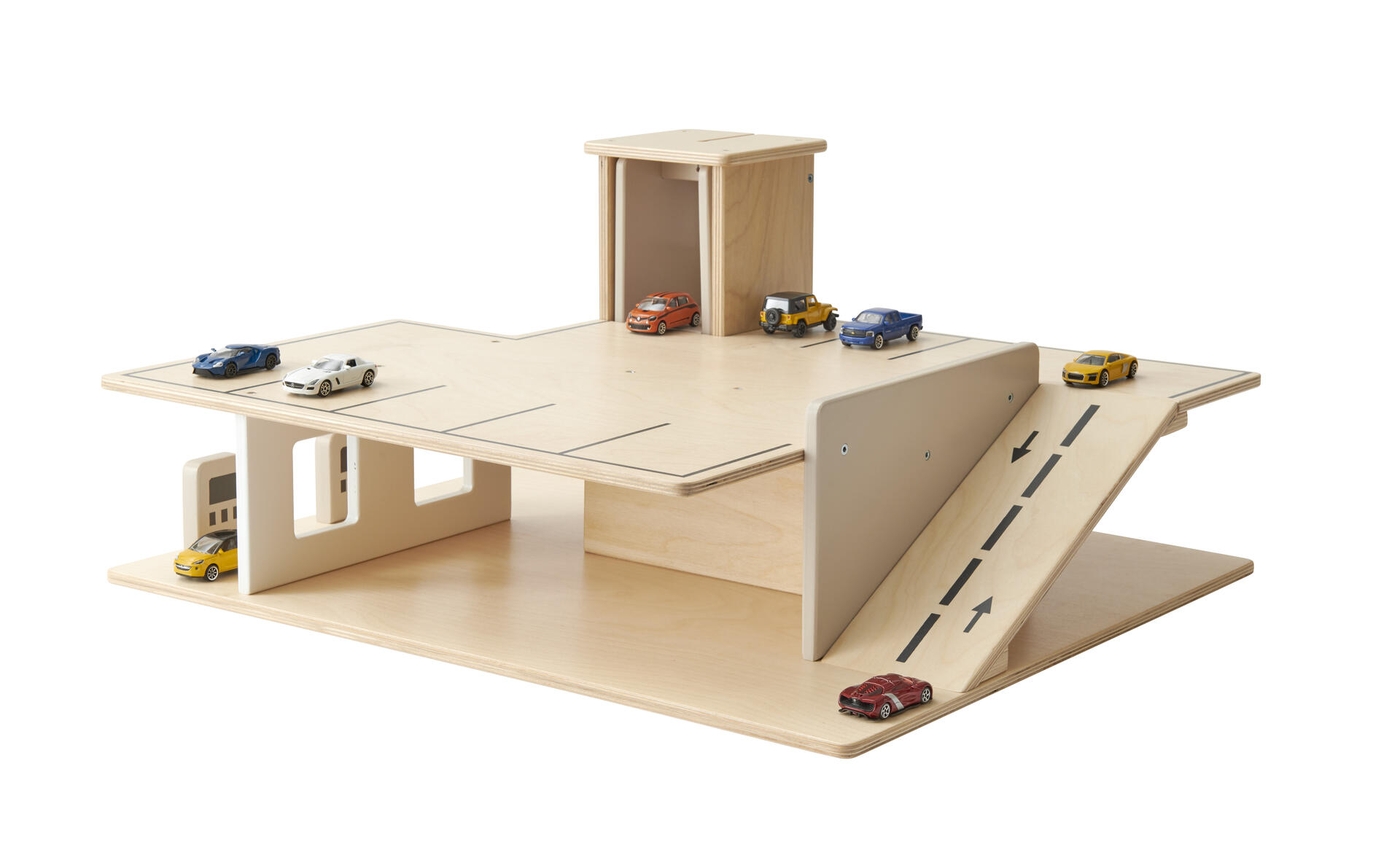 Ett litet men stabilt parkeringshus. Öppet från alla håll så att flera barn kan leka samtidigt. Med en ramp och tryckta markeringar för parkeringsfickor. Behöver du plats för fler bilar är parkeringshuset kompatibelt med parkeringshus stort och medium. Levereras färdigmonterat. Av tjock, lackerad FSC-godkänd plywood. Svanenmärkt, licensnummer 5095 0005. PVC-fri. Från 2 år.