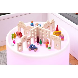 Avdelare som sätts ihop för att skapa en 4-delad lekscen med taktila bilder av en stormarknad, polisstation, sjukhus och hus. Uppmuntrar till fantasifull lek, samarbete och utforskande. Mått: 60x60x17 cm. Av FSC-märkt björkplywood. PVC-fri. Från 3 år.