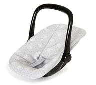 Innehåller docksäng med bäddset, sittvagn, skötväska, docklift och en mjuk docka med docktillbehör. Färger kan variera. Dockans längd är 35 cm. PVC-fri. Från 3 år.