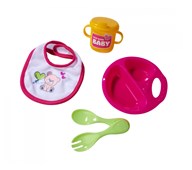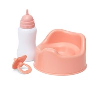 30 delar/fp. Ett stort set med docktillbehör. Setet innehåller bland annat nappflaskor, en potta, leksaker, napp, tallrikar och bestick samt leksaksmat. Allt får plats i en praktisk väska för enkel förvaring. Material av HIPS, LDPE och PE. PVC-fri. Från 3 år.