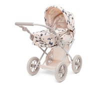 Vagnens säte kan justeras så att dockan kan ligga eller sitta upp. Urtagbar, mjuk docklift. Handtaget är justerbart för att passa barn med olika ålder och längd. Avtagbar klädsel, fällbar sufflett och shoppingkorg. Fällbart ramverk för transport. Mått: 66x36x72 cm. Av stål, PP och polyester. PVC-fri. Från 3 år.