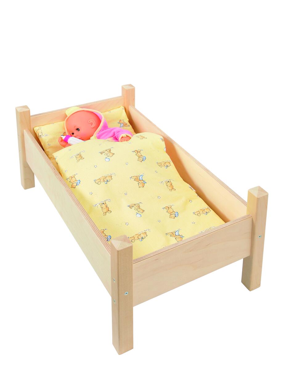 3 delar. Det här fina bäddsetet passar perfekt till docksängen och dockvagnen. I setet ingår madrass, täcke och kudde, så att du kan stoppa om favoritdockan. Mått: 43x32 cm. Maskintvätt 30°. Färger kan variera. PVC-fri. Från 3 år.