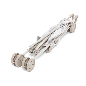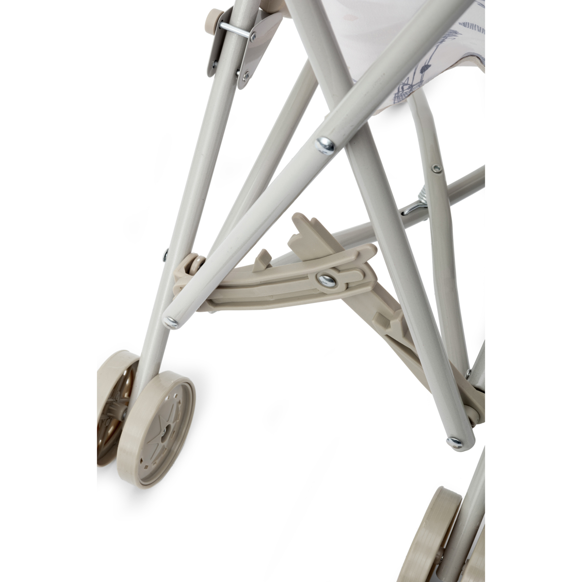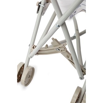 En liten dockvagn som är smidig att ta med på resan. Vagnen är hopfällbar och har avtagbar klädsel. Passar dockor upp till 45 cm. Storlek: 51x26x55 cm. Av stål, PP och polyester. PVC-fri. Från 3 år.